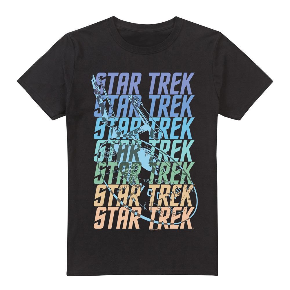 Ce T-shirt présente un col rond classique et des manches courtes, offrant une coupe confortable et polyvalente pour un usage quotidien. Le devant est orné d'un imprimé graphique du Star Trek Enterprise, ce qui en fait une pièce distinctive pour les fans.