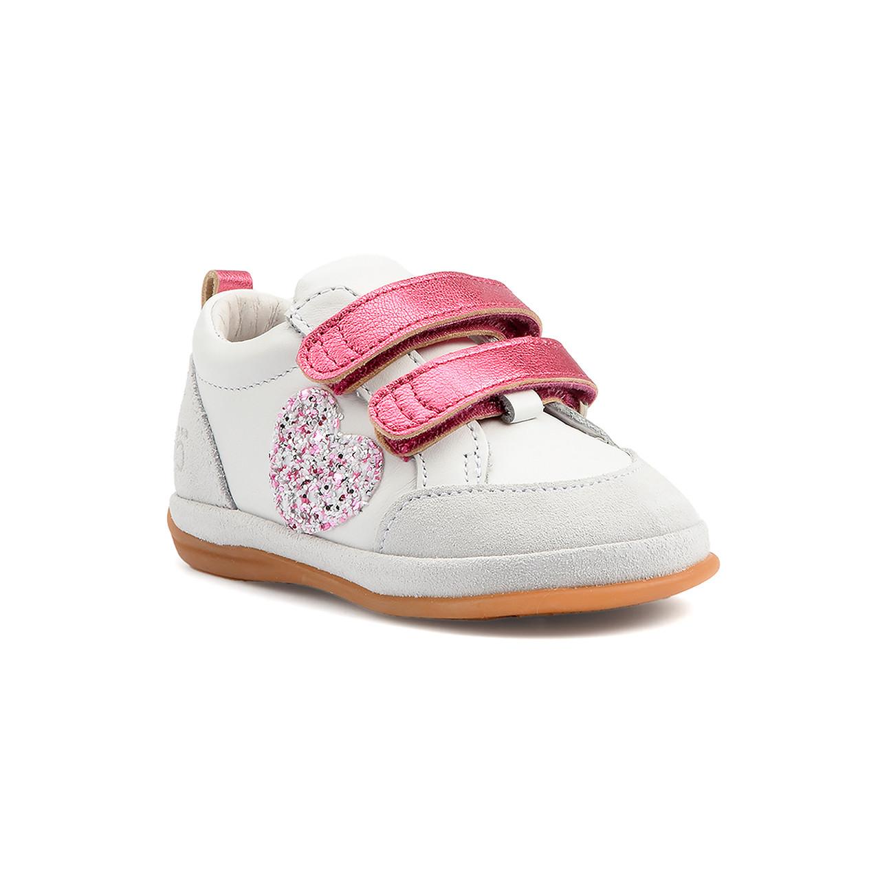 Les sneakers basses Myrtille sont conçues pour un usage général et quotidien. Elles offrent un maintien et un confort grâce à leur semelle en gomme et à leur doublure en cuir. Leur dessus et tige en cuir et daim assurent une durabilité. Les détails de ces sneakers incluent un basket en cuir et cuir velours, ainsi qu'un petit tab de tirage à l'arrière pour un port facile. Les deux bandes ajustables en velcro roses permettent un serrage rapide et facile. Les sneakers basses Myrtille sont disponibles en blanc et sont idéales pour les enfants en raison de leur style bas et polyvalent. Elles offrent un aspect chic et confortable.