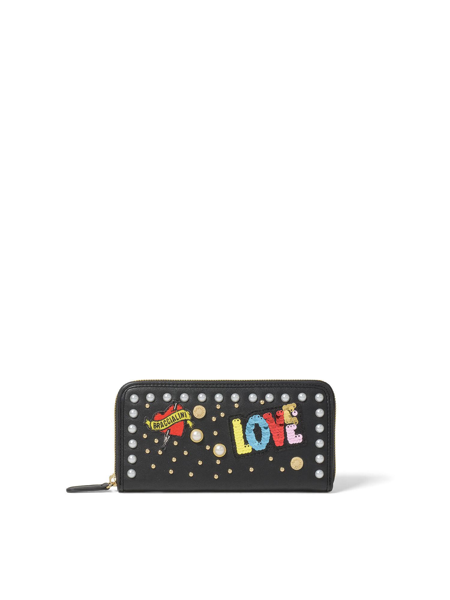 Portefeuille femme. La fermeture est avec zip. Les poches intérieures sont des porte-cartes et des porte-billets. Les poches extérieures sont absentes. La bandoulière est manquante. Il manque la poignée. Il y a un compartiment interne. Le matériau extérieur est 50 % polyester, 50 % polyuréthane. À l'intérieur, il est composé à 80 % de polyuréthane et à 20 % de polyester. Dimensions : 18,5x10,5x3 cm. Produit de mode