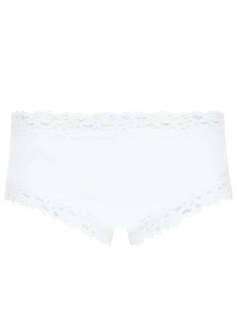 Cette culotte boyleg offre une coupe confortable avec une touche d'élégance. Le design présente une délicate bordure en dentelle à la taille et aux ouvertures des jambes, offrant une esthétique douce et féminine.