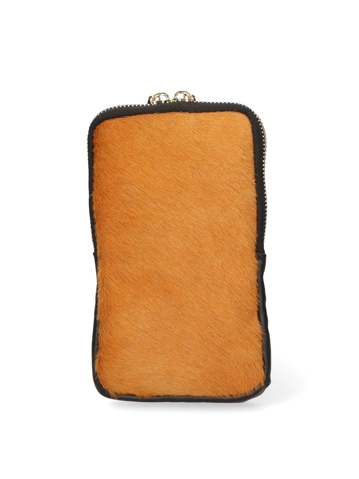 Women's mobile phone shoulder bag with single compartment. Italian artisan product in genuine sauvage leather + calfhair. Made in Italy