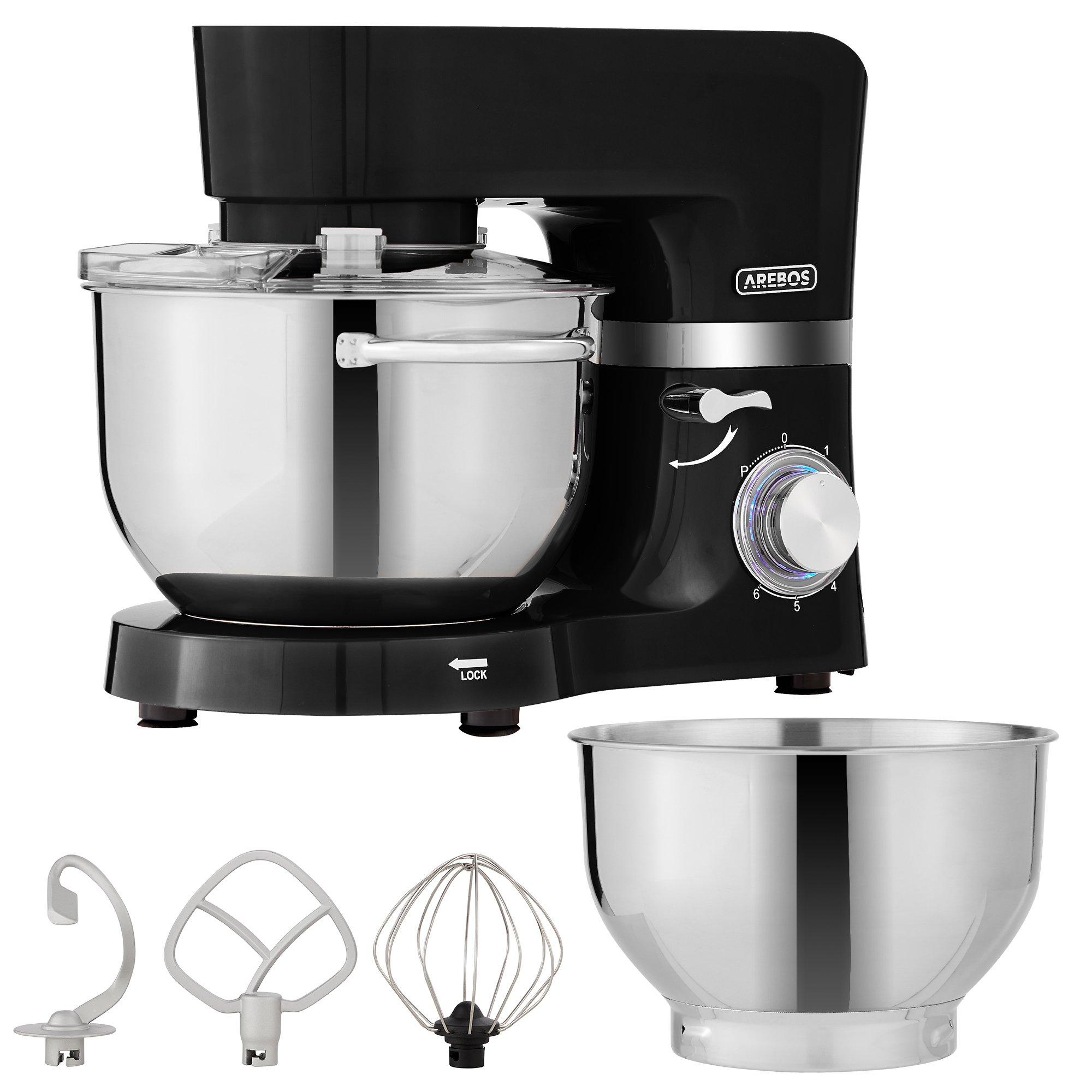 Arebos, Robot de Cuisine 1500W avec 2x Acier inoxydable-Bol mélangeur 6 étapes