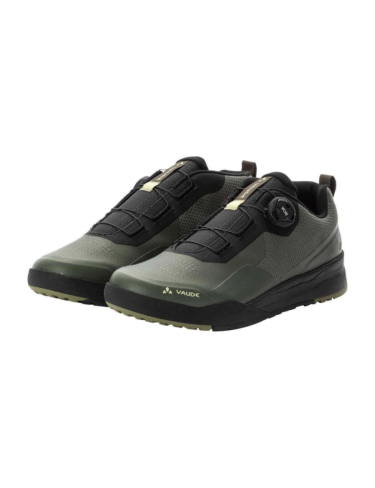 La chaussure de vélo Moab PRO Tech réunit tout ce qui fait de la série Moab des produits exceptionnels, et va encore plus loin ! La chaussure de vélo All Mountain au design linéaire séduit par son excellent confort au porter. Sa semelle intérieure de nouvelle conception en mousse PU végane écologique, biosourcée à 72 %, offre un degré inégalé de confort et de contrôle. Pour offrir une sensation de bien-être aux cyclistes de tout poil, la chaussure de vélo Moab PRO Tech est munie d'une doublure respirante régulant l'humidité. Ses prestations sont complétées par le système BOA® Fit, qui assure un maintien sûr d'une part, et qui offre un ajustement sans effort d'autre part. Dans cette variante PRO, la chaussure de vélo est de plus compatible avec les pédales automatiques ; la chaussure peut être équipée de taquets de tous les fabricants de renom. La chaussure de vélo Moab PRO Tech est munie d'une semelle SUPTraction de nouvelle conception avec V-Flow 6. Accrochée à la pédale, elle offre un contrôle optimal et une adhérence puissante quand il faut pousser le vélo grâce à son profil adhérent aux orteils et au talon. Des renforts au niveau des orteils et du talon protègent des pierres et des coups. Ses matières sont composées de polyester recyclé, à hauteur de 50 % pour la doublure et de 55 % pour la matière principale.