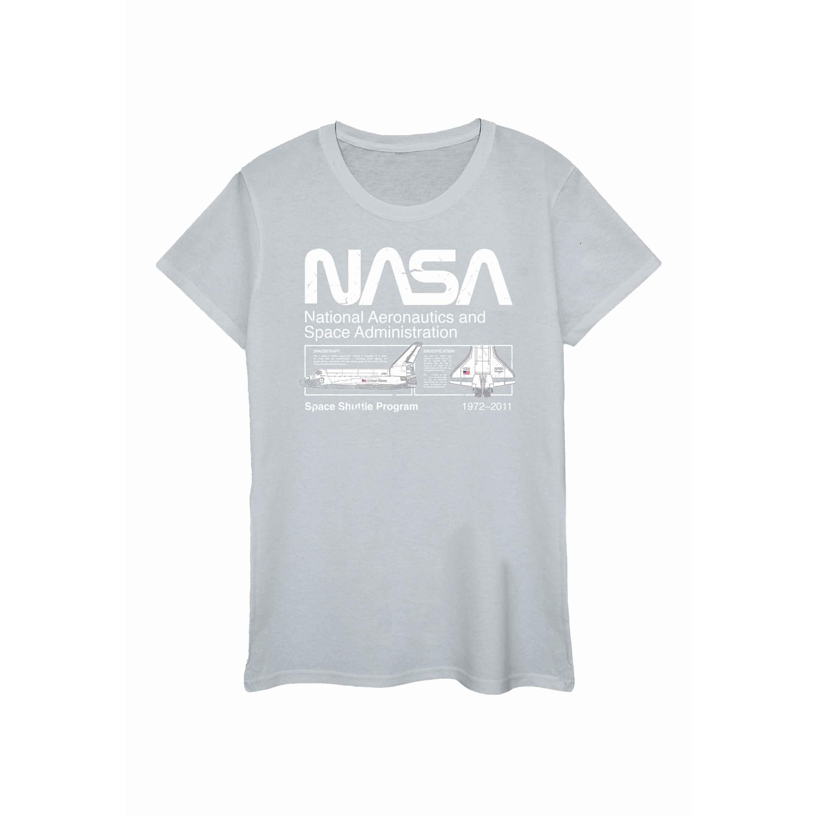 Ce T-shirt présente un imprimé graphique célébrant le programme NASA Space Shuttle. Le design comprend le logo emblématique de la NASA, le nom complet National Aeronautics and Space Administration et des illustrations détaillées du vaisseau spatial Space Shuttle.