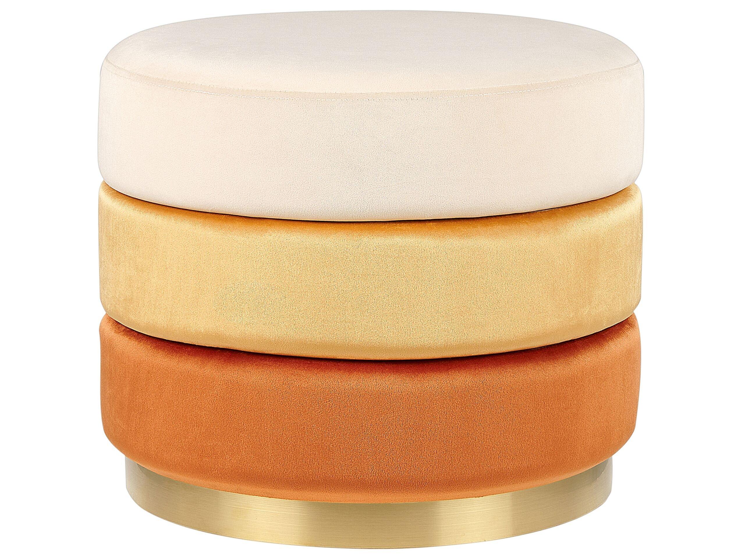 Repose-pieds glamour. Restez captivé par l'esthétique glamour de ce pouf moderne. Drapé dans un somptueux tissu de velours qui passe gracieusement d'un dégradé de couleurs à l'autre, ce produit est un plaisir visuel. Sa base en métal doré ajoute une touche de luxe, rehaussant sans effort votre décor. Avec son design unique et son confort moelleux, ce pouf promet d'être la pièce maîtresse dans n'importe quelle pièce.