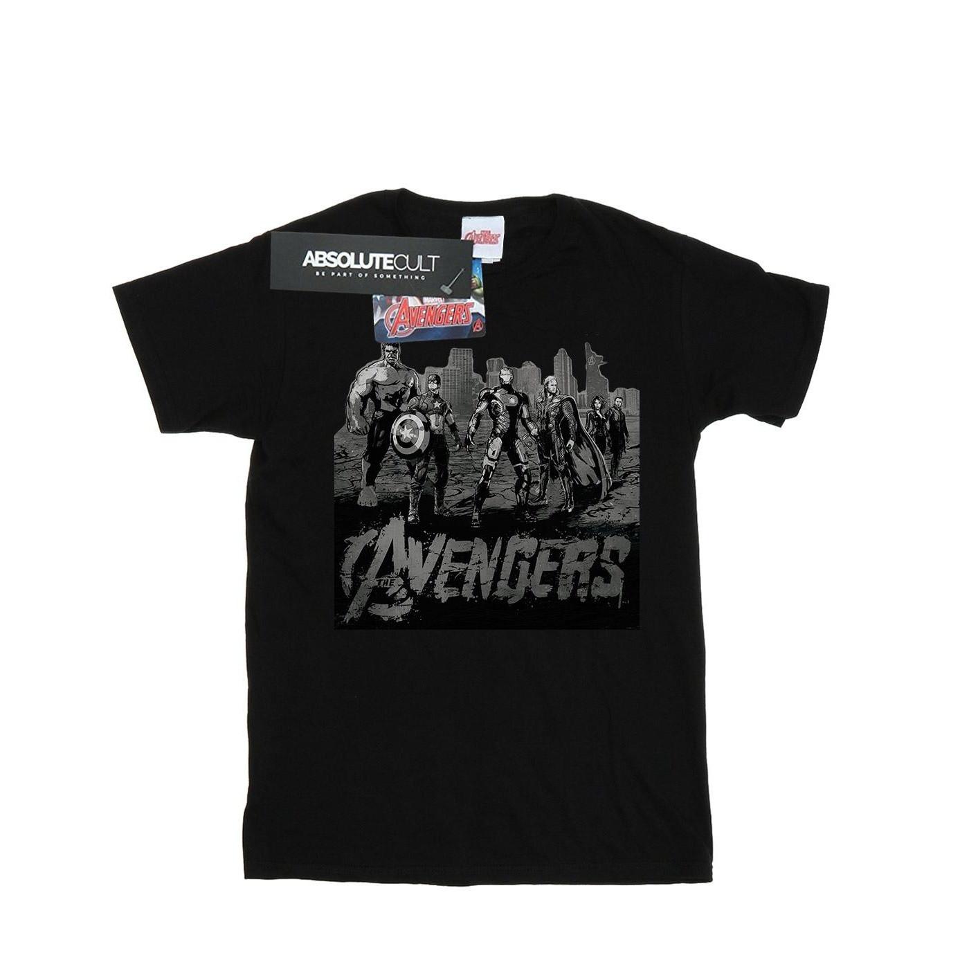 Ce T-shirt Avengers présente un col rond classique et des manches courtes, offrant une coupe confortable et polyvalente. Le devant du T-shirt arbore un imprimé graphique dynamique de l'équipe emblématique des Avengers, sur fond de paysage urbain, avec le logo "Avengers" affiché en évidence en dessous. Ce design en fait un excellent ajout pour les fans de l'univers Marvel.