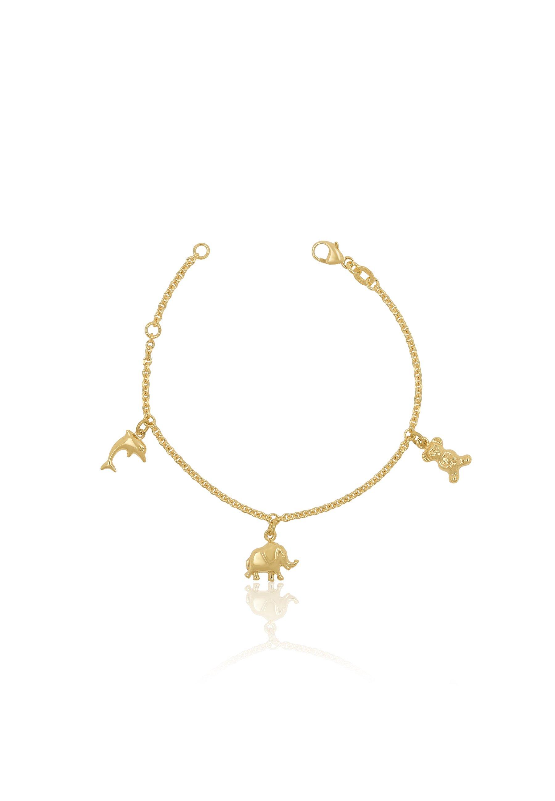 MUAU Schmuck Bracelet rond forçat or jaune 750 breloque ours, éléphant, dauphin, 2mm, 16cm