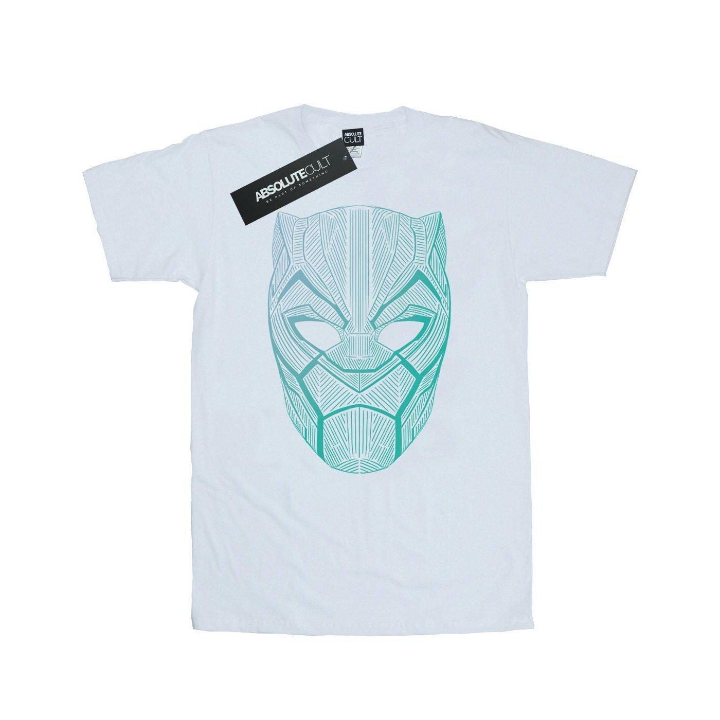 Ce T-shirt présente un imprimé graphique saisissant du masque Black Panther. Le design est imprimé sur un T-shirt classique à col rond et manches courtes, offrant une coupe confortable et polyvalente pour un usage quotidien.