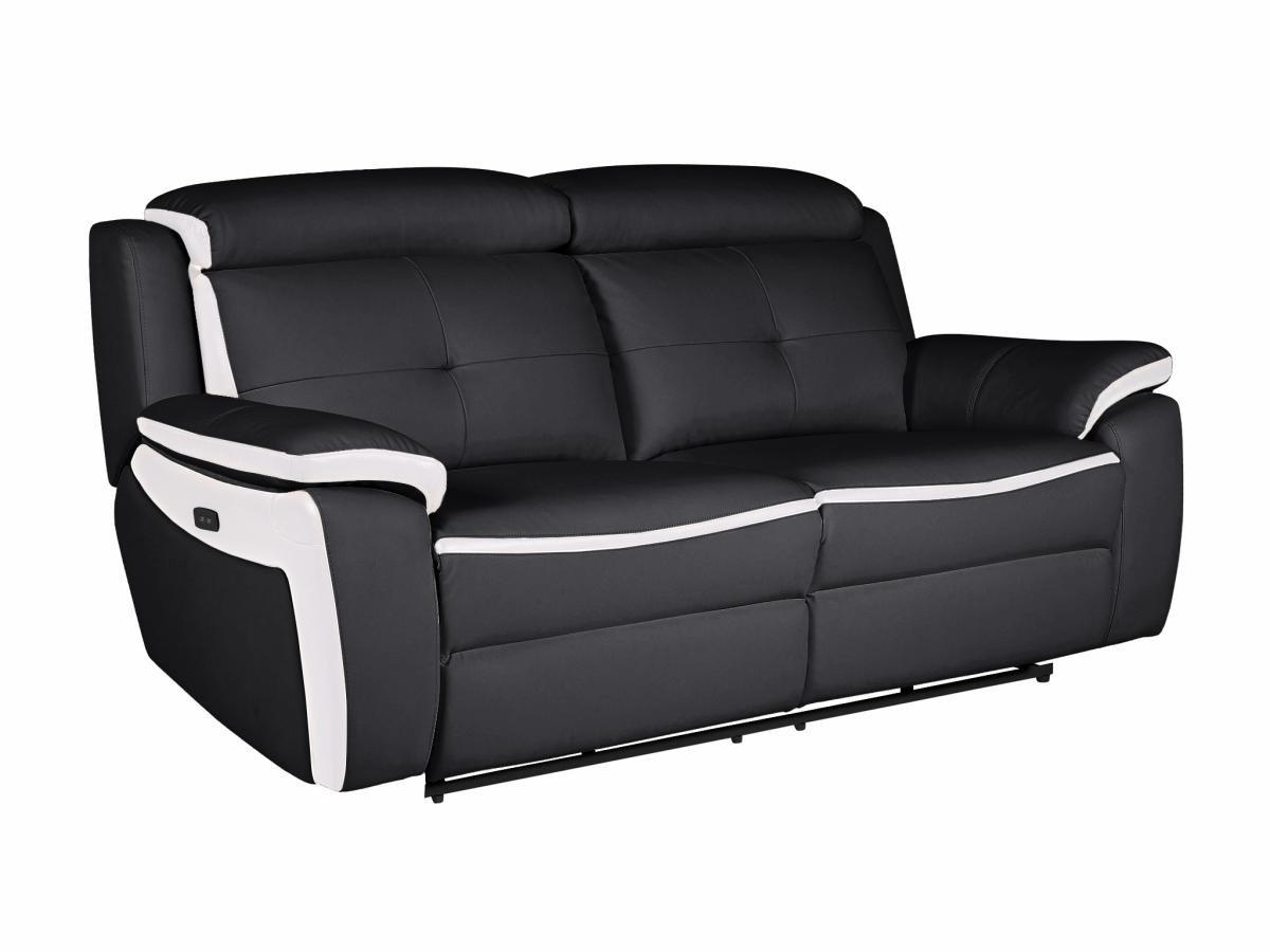 Vente-unique, Canapé 3 places relax électrique en cuir ANGELIQUE