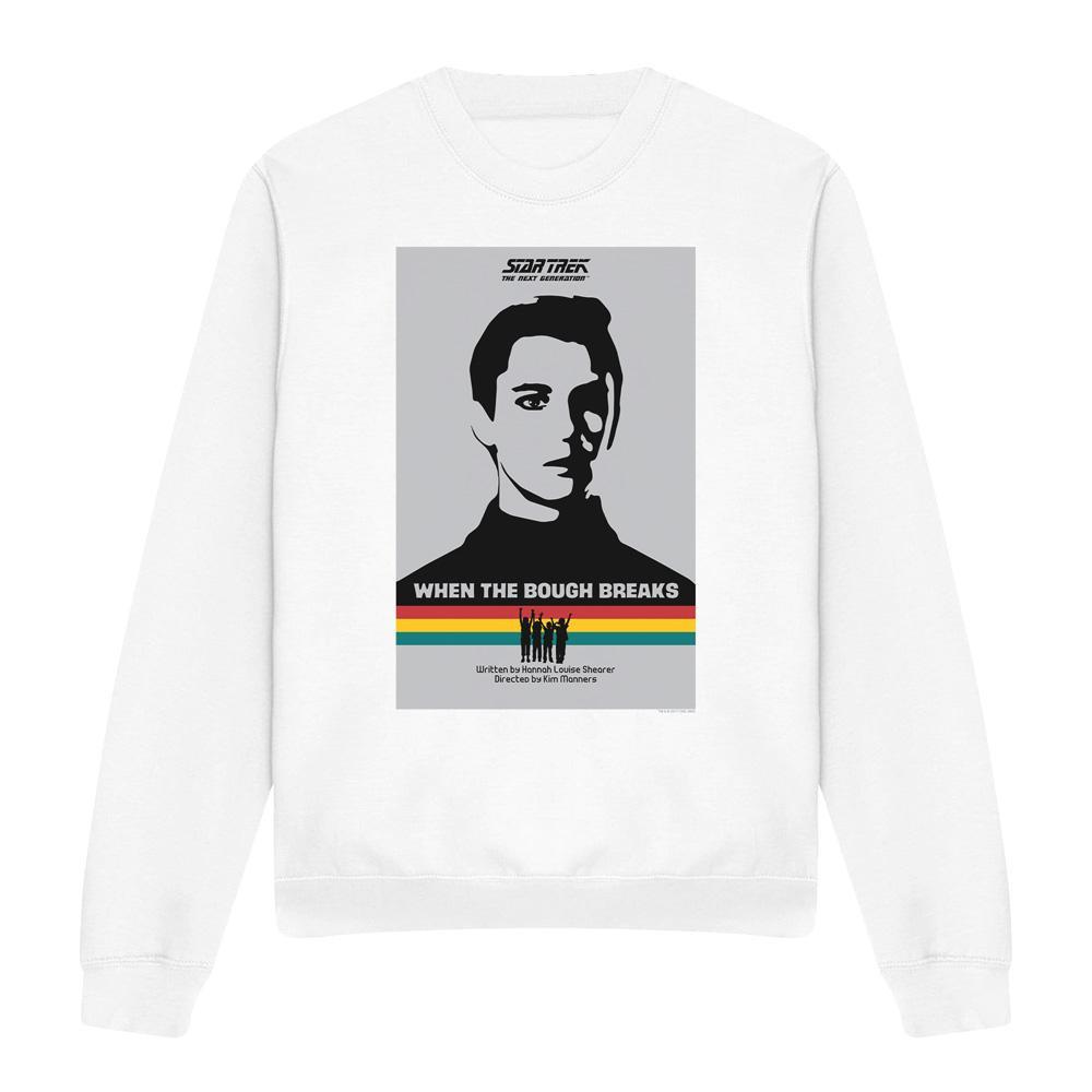 Ce sweatshirt présente un imprimé graphique inspiré de Star Trek: The Next Generation Saison 1 Épisode 17, «When the Bough Breaks». Le design met en valeur un portrait stylisé avec le titre de l'épisode et le logo de la série, en faisant une pièce distinctive pour les fans.
