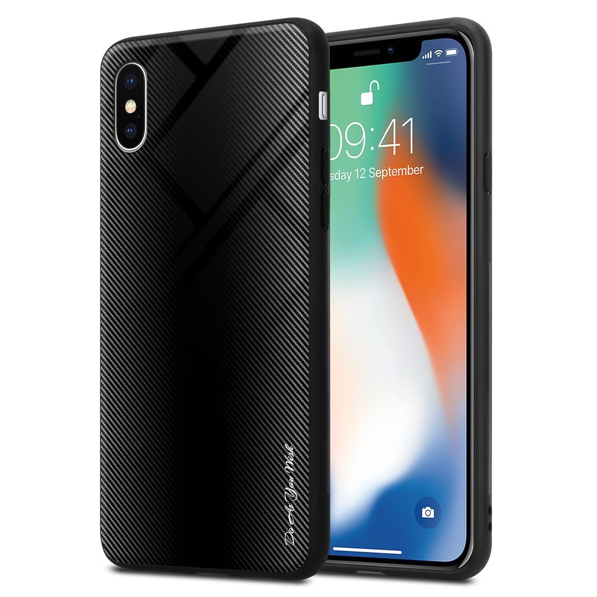 Cadorabo, Housse compatible avec Apple iPhone X / XS - Aspect rayé - Coque de protection en silicone TPU et dos en verre trempé