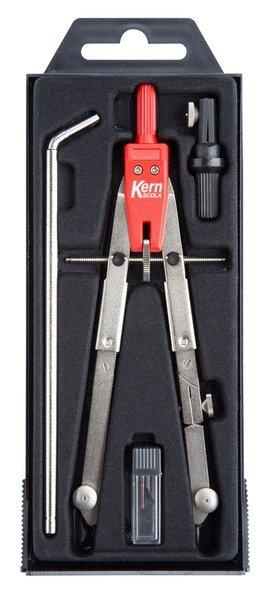 D-4589 / D-4589 A - Schnellverstellzirkel Preisgünstiger Schnellverstelzirkel von Kern, für Schule oder Studium. Mit einer Basislänge von 170 mm, inklusive zwei Ersatbleiminen und einer Ersatznadel. mit Verlängerungsstange mit 2 Gelenkschenkeln und Bleieinsatz max. Radius 165 mm mit Verlängerungsstange max. Radius 285 mm Minendose mit 2 Bleiminen + 1 Nadel mit Schulter -und Langspitze