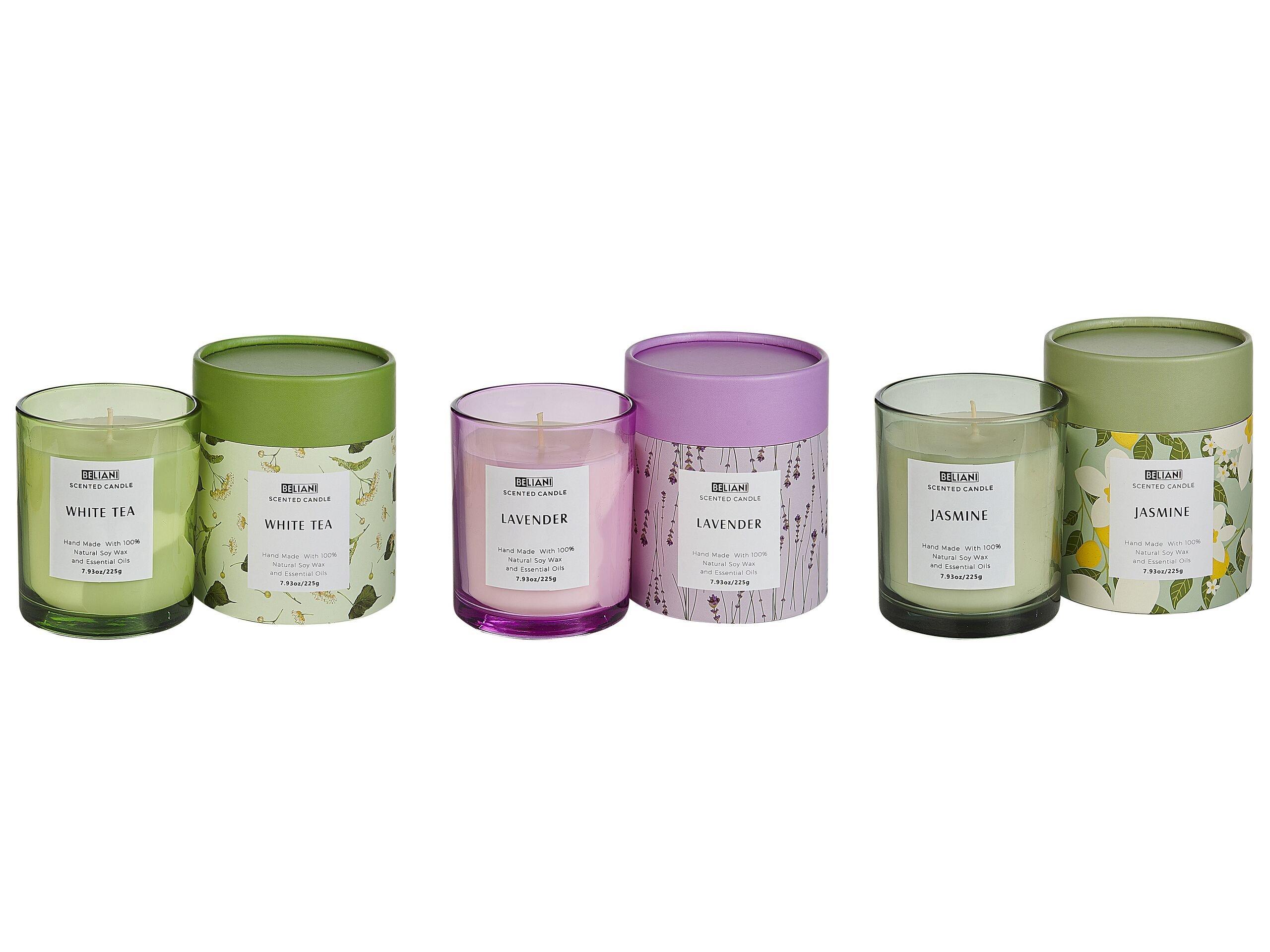 Beliani Lot de 3 bougies parfumées en Cire de soja COLORFUL BARREL