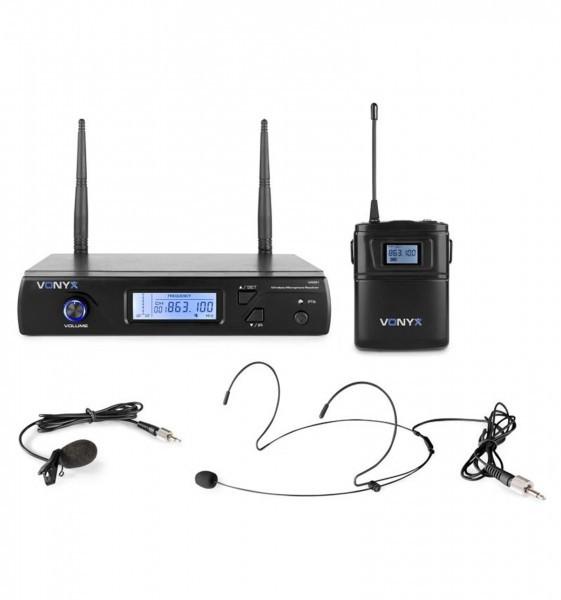 Principe de conversion : condensateur, caractéristique directionnelle : cardioïde, construction : récepteur, casque, émetteur portable, lavalier, connexions : XLR, prise jack 6,3 mm, traitement du signal : numérique, mode de fonctionnement : alimentation secteurÉmetteur portable avec affichage LCD bleu pour la fréquence et létat de la batterieSortie XLR symétrique et sortie jack 6,3 mm asymétrique16 fréquences UHF sélectionnablesBonne qualité sonore et réglage du volumeRécepteur avec bodypack et microphone casqueAlignement IR des fréquences sur lémetteur et le récepteurContenu de la livraison :RécepteurBodypackMicrophone casqueMicrophone lavalierAlimentationCâble jack 6,3 mm