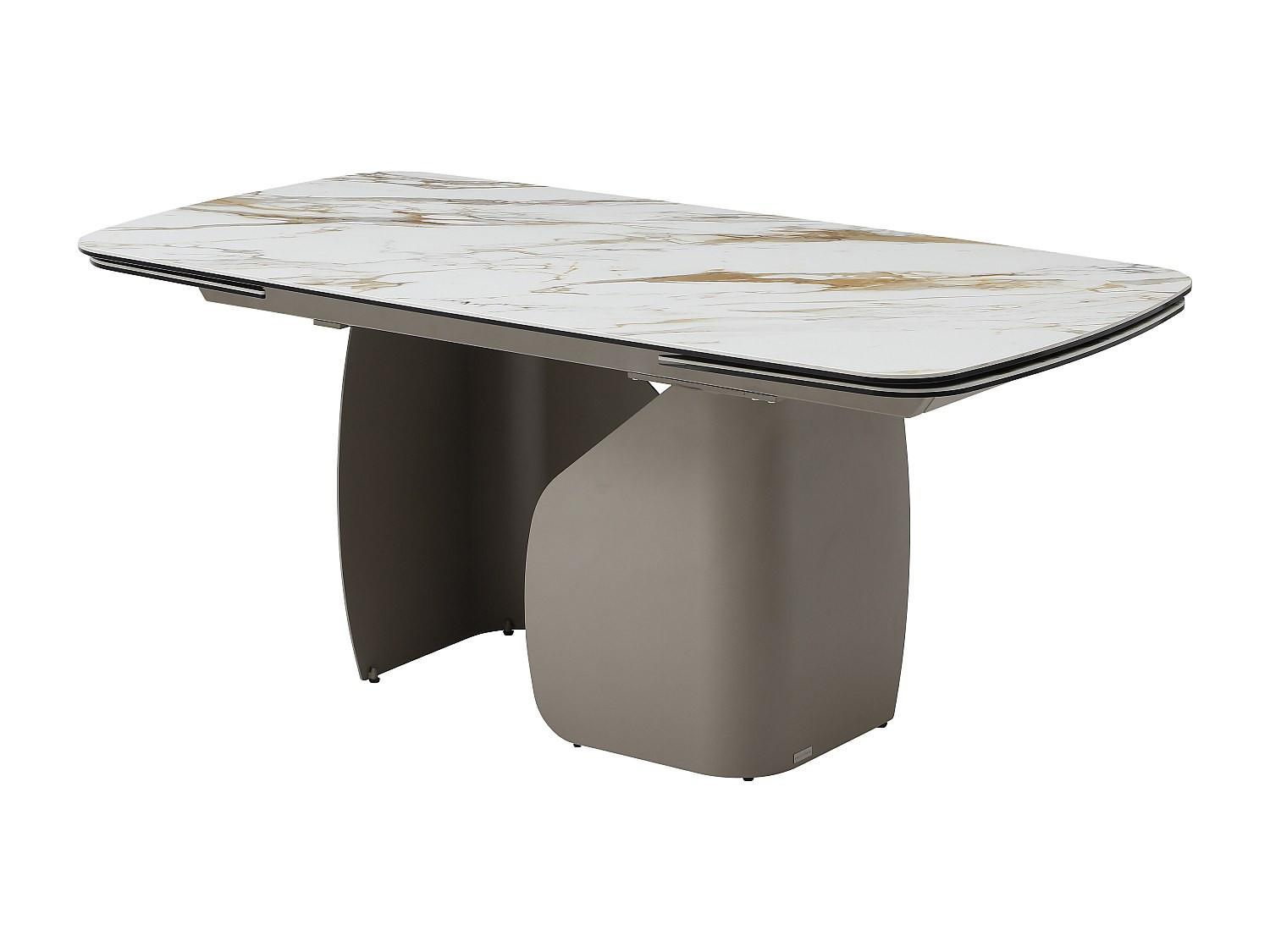 La table à manger extensible CAMUVO associe un plateau en céramique et verre trempé à un piètement en métal dont la silhouette sculpturale, teintée de taupe, apporte un caractère graphique à l’ensemble. Cette combinaison de matériaux assure une bonne stabilité et une utilisation durable, tout en restant simple à entretenir au quotidien.