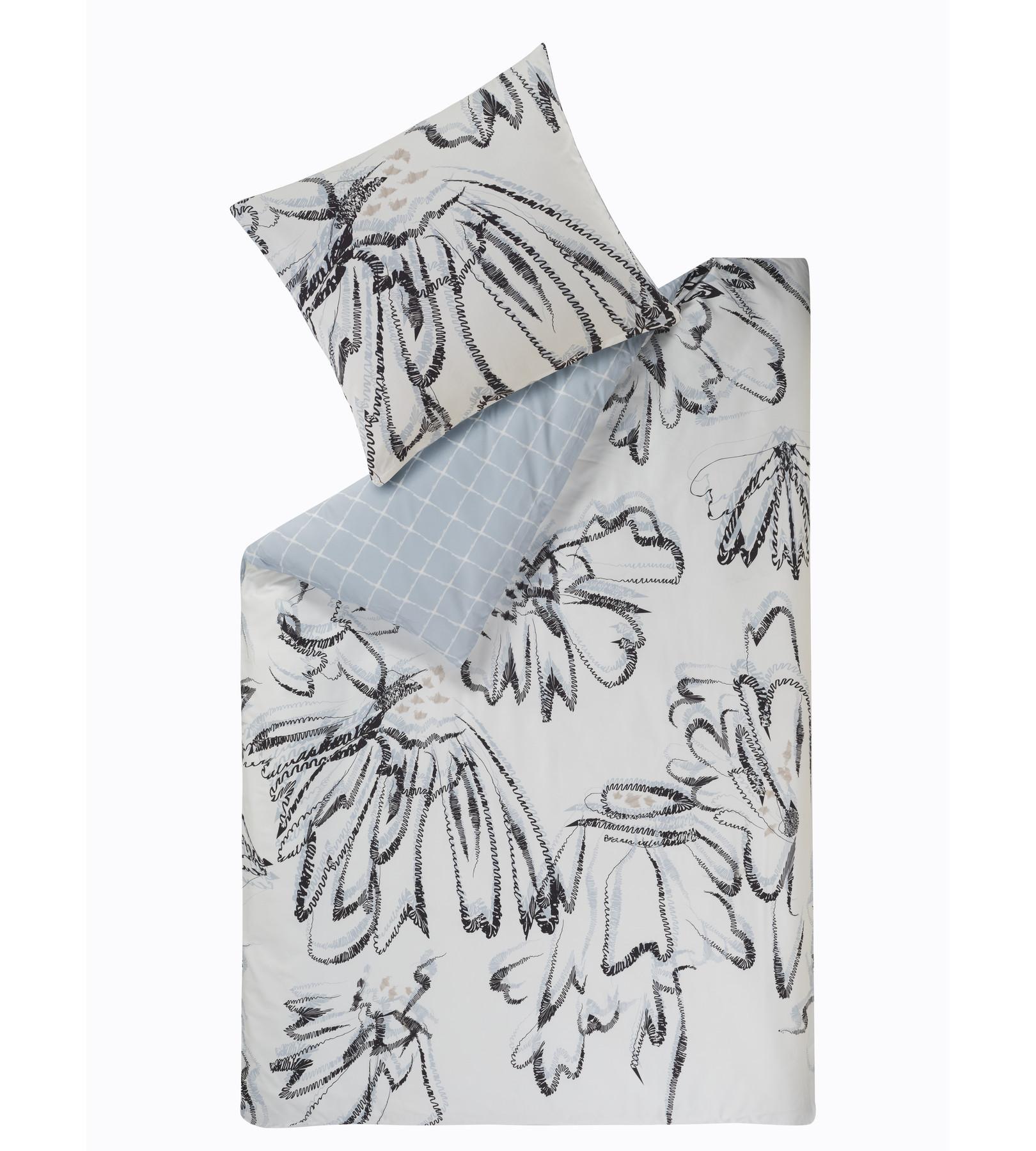 La taie d'oreiller Grace présente un motif floral moderne qui ajoute une touche d'élégance à toute chambre à coucher. Le motif floral complexe en noir et blanc est complété par un subtil revers à carreaux bleu clair, offrant une polyvalence de style. Cette taie d'oreiller est conçue pour offrir du confort et améliorer l'esthétique d'un espace de couchage.