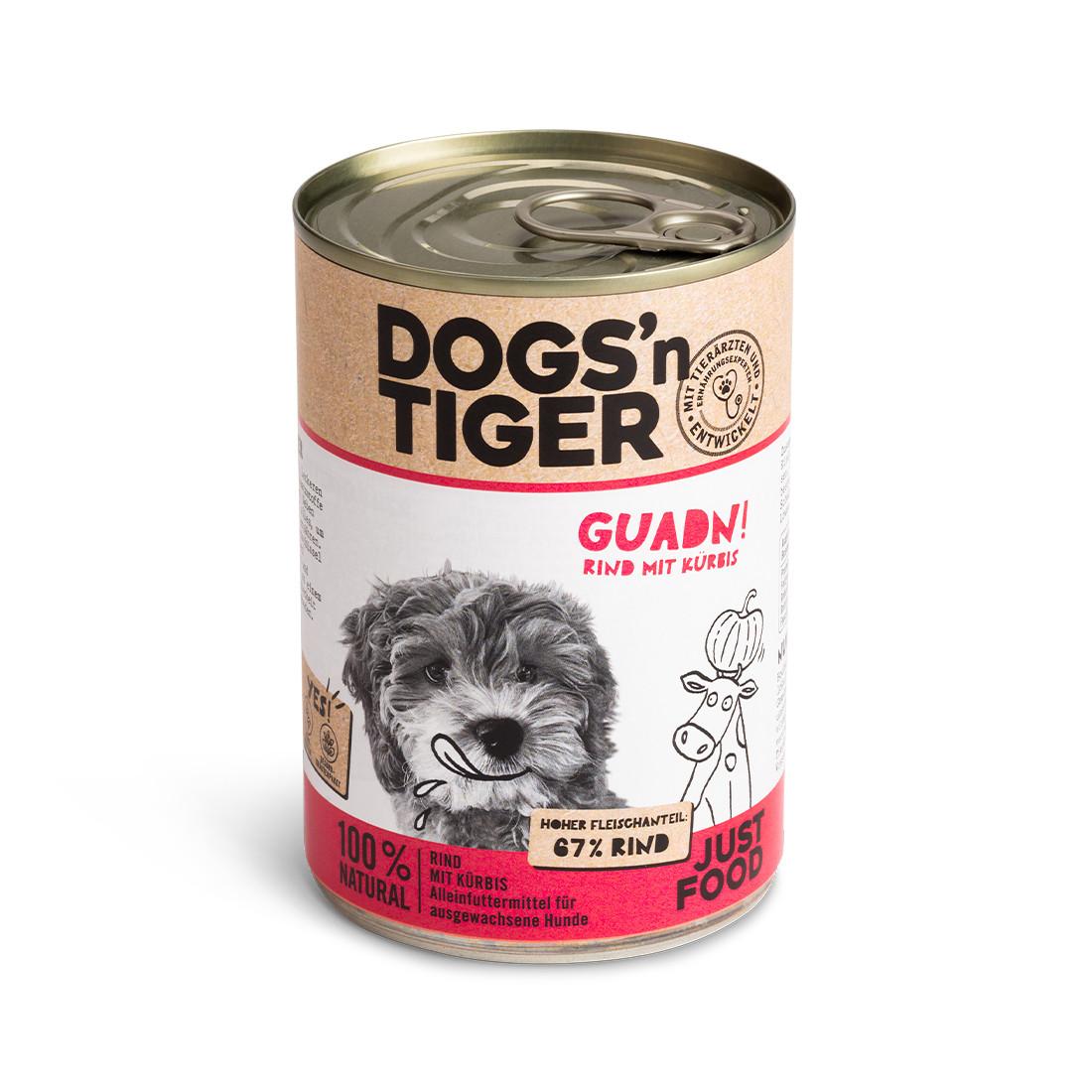 Des aliments pour chiens de la meilleure qualité pour ton chéri, , Guadn le chien peut vraiment s'en donner à cœur joie, , Nos aliments humides "Guadn" garantissent des petits moments de bonheur dans la gamelle. La combinaison de bœuf et de potiron fait battre le cœur des chiens, , , Nous aimons les chiens et c'est pourquoi nos aliments humides "Guadn" ne contiennent que les meilleurs ingrédients. La part de viande particulièrement élevée de 67% de bœuf avec du muscle et des abats pose les bases d'une croissance adaptée à l'espèce. Notre paquet d'herbes saines a été spécialement développé par des vétérinaires et des physiologistes de la nutrition pour faciliter la digestion de ton animal préféré. La recette spéciale se compose d'herbes bienfaisantes telles que le fenouil, le souci, l'herbe d'ortie, l'achillée millefeuille, l'herbe de pissenlit, la feuille de plantain lancéolé, la racine de pissenlit et le millepertuis. Comme le bien-être des chiens nous tient à cœur, nous renonçons à l'ajout de céréales, de sucre et d'arômes, de colorants et de conservateurs artificiels., , Nous obtenons ainsi la meilleure qualité, qui permet à ton petit compagnon de grandir avec bonheur. , , Conserver au frais et au sec, conserver la boîte ouverte au réfrigérateur. Tu trouveras la date limite de consommation et le numéro de lot sur le fond de la boîte.