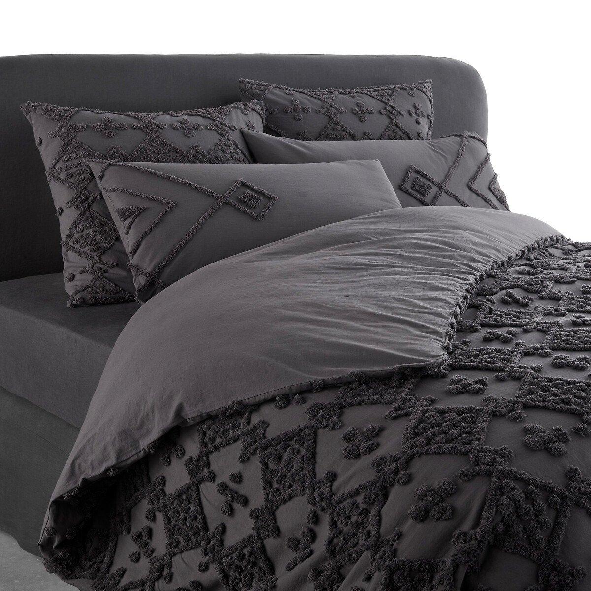 La housse de couette Pintu se caractérise par le travail minutieux du tuft fait main sur une belle étoffe en coton. Elle apportera une atmosphère chic et confortable à votre chambre.