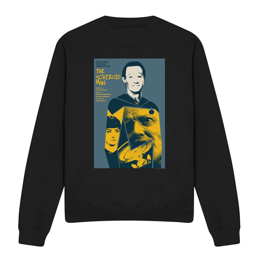 Ce sweatshirt présente un imprimé graphique unique inspiré de "Star Trek: The Next Generation" Saison 2, Épisode 6, intitulé "L'Homme schizoïde". Le design met en valeur les personnages clés et les éléments thématiques de l'épisode dans une esthétique stylisée et rétro-futuriste.