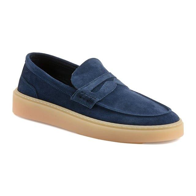 Les mocassins Debonair Penny Loafers sont des chaussures de style classique conçues pour les occasions formelles et chics. Leur dessus en daim offre une texture riche et élégante. La doublure en cuir et textile garantit un confort optimal tout en préservant la structure de la chaussure. Les semelles intérieures en cuir et amovibles facilitent la maintenance et l'adaptation à différents types de sol. Les semelles en gomme épaisse assurent une solide protection et une stabilité. Les détails de la chaussure comprennent un loafer en cuir velours qui ajoute une touche de sophistication. La couleur bleu marine est une option élégante et raffinée. Ces mocassins sont idéaux pour les occasions de bureau, les soirées et les événements, où le raffinement, le confort et le style sont essentiels.