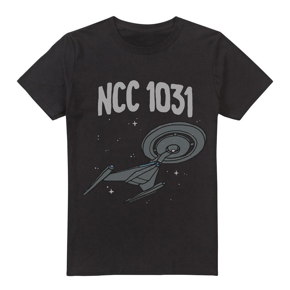 Ce T-shirt présente un imprimé graphique du vaisseau spatial NCC 1031 de la classe Crossfield, ce qui en fait une pièce distinctive pour les fans. Le col rond classique et les manches courtes offrent une coupe confortable et polyvalente.