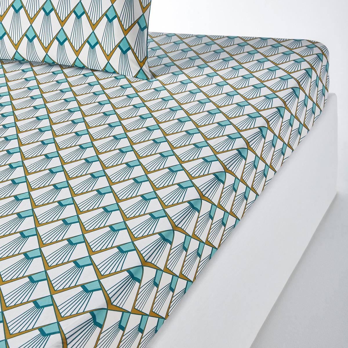 Le drap-housse imprimé Elisa est en percale. Cette parure, avec ses motifs géométriques aux tonalités douces et harmonieuses, s'inspire d'un style vintage.