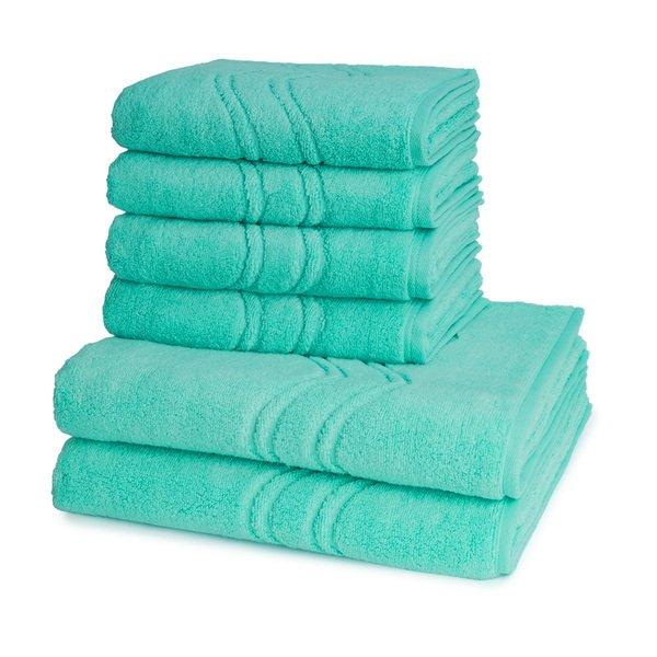 La série de serviettes éponges Cashmere Feeling allie design raffiné et confort maximal. Le tissu éponge foulé doux de 520 g/m² offre un toucher moelleux et une grande capacité d'absorption. Avec leur motif décoratif en forme de vagues et leur bordure tissée, ces linges apportent une touche d'élégance dans la salle de bain. Grâce à leur cordon de suspension pratique et à leurs couleurs brillantes, elles sont idéales pour un usage quotidien. Le set comprend : 4 X serviettes (50 X 100cm), 2 X draps de douche (75 X 140cm)