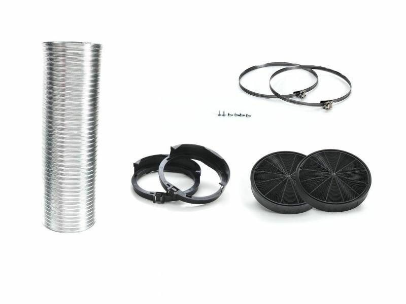 Für Umluftbetrieb - Bestehend aus: 2 Aktivkohlefilter, Aktivkohlefilter-Halterung, - Alu-Flex-Schlauch ø150 mm und 1500 mm lang, 2 Schlauchschellen. - - - - - - -