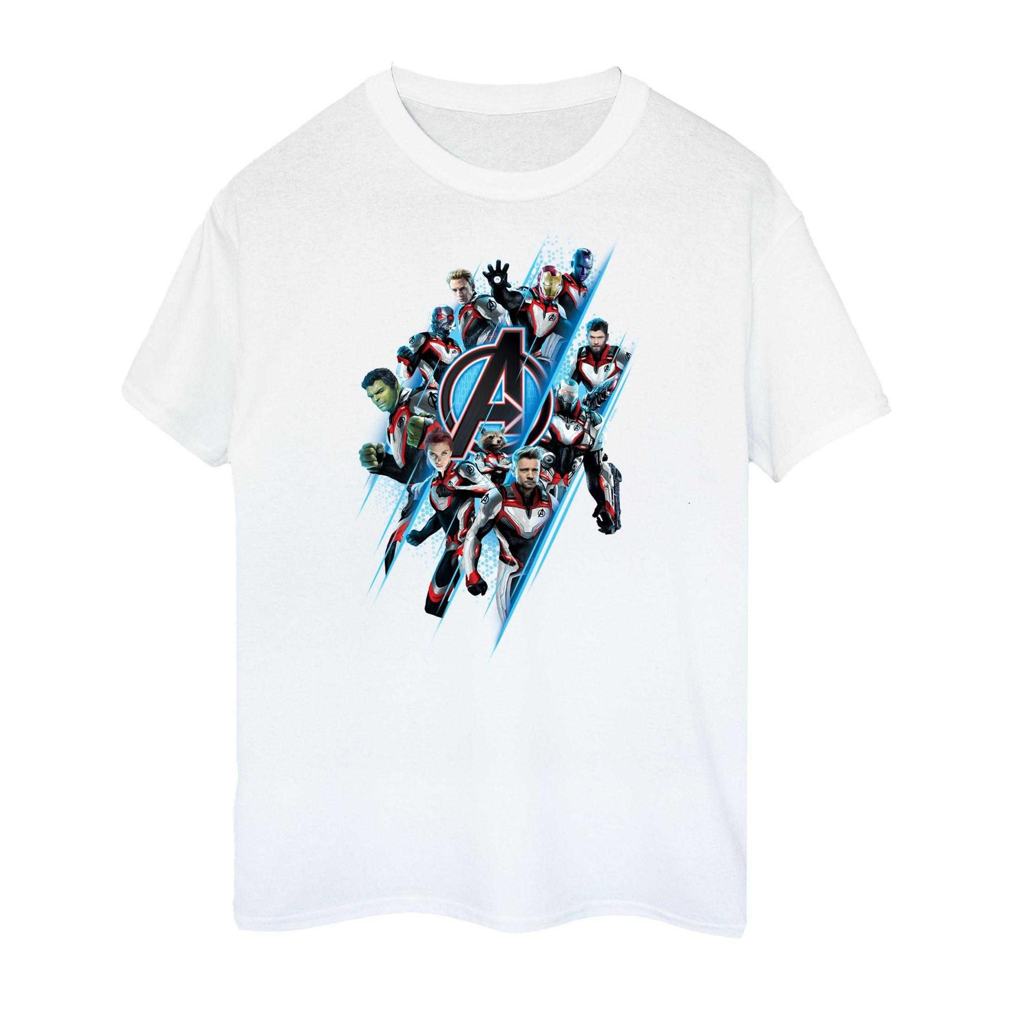 Ce T-shirt présente un imprimé graphique dynamique du logo Avengers entouré de divers super-héros Marvel. Le col rond classique et les manches courtes en font un ajout polyvalent à toute garde-robe décontractée.