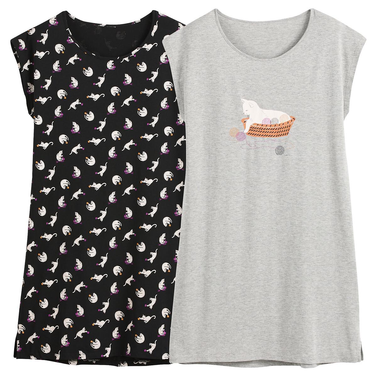 SO'HOME Lot de 2 chemises de nuit à imprimé chat