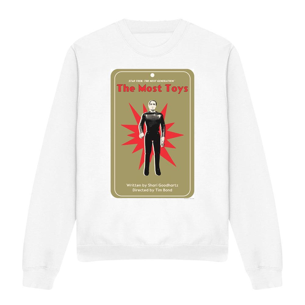 Ce sweatshirt présente un imprimé graphique unique inspiré de « Star Trek: The Next Generation » Saison 3 Épisode 22, intitulé « The Most Toys ». Le design met en valeur une figurine d'action rétro de Data, avec les détails de l'épisode, ce qui en fait une pièce distinctive pour les fans.