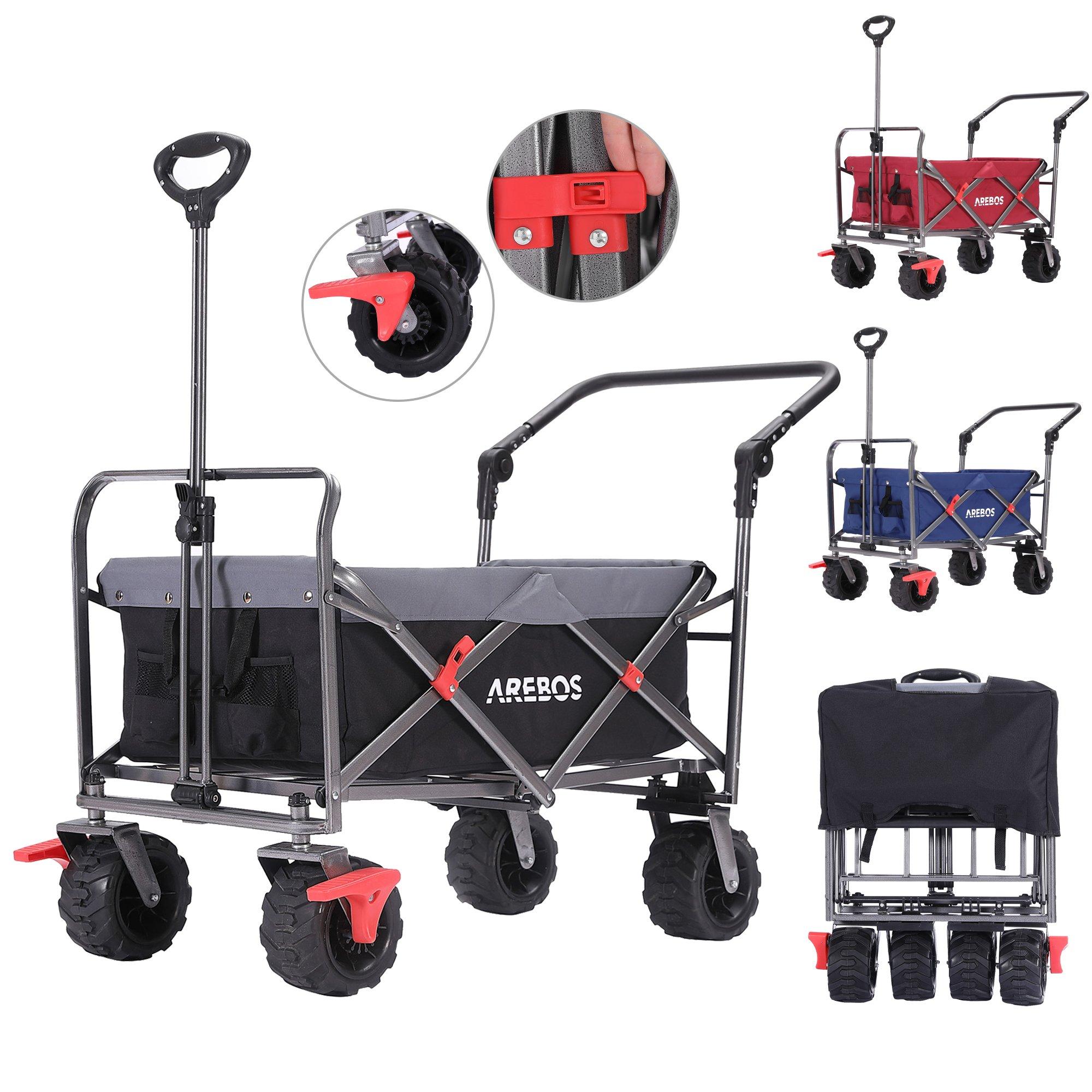 Arebos Charrette à bras | Chariot de transport | Pliable | avec tige télescopique