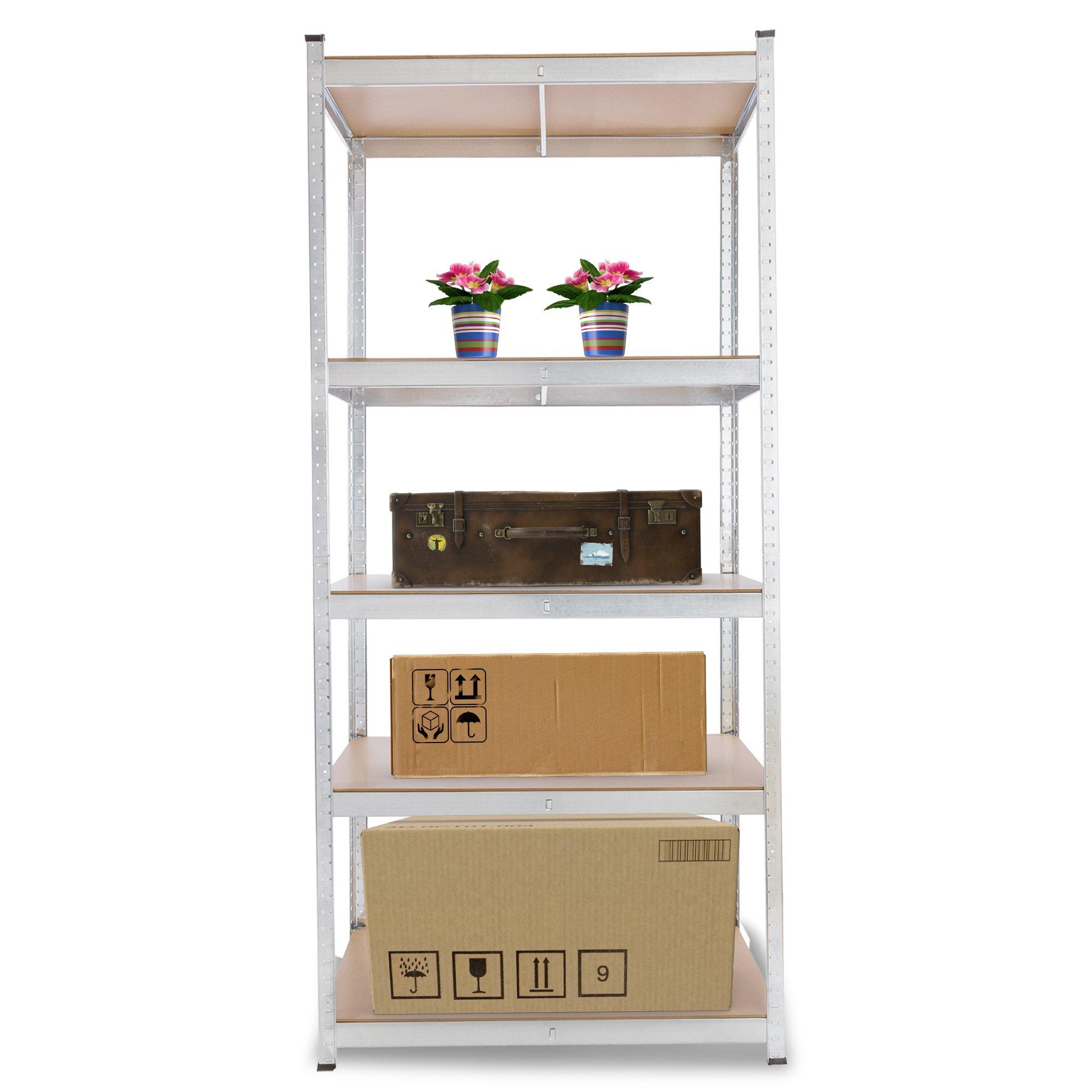 [DIMENSIONS] 200 x 90 x 45 cm (HxLxP) | charge admissible 1000 kg | système d'emboîtement sans outils | plateaux en MDF épais | 5 plateaux | couleur galvanisé | très grande épaisseur du matériau du châssis de 0,7 mm