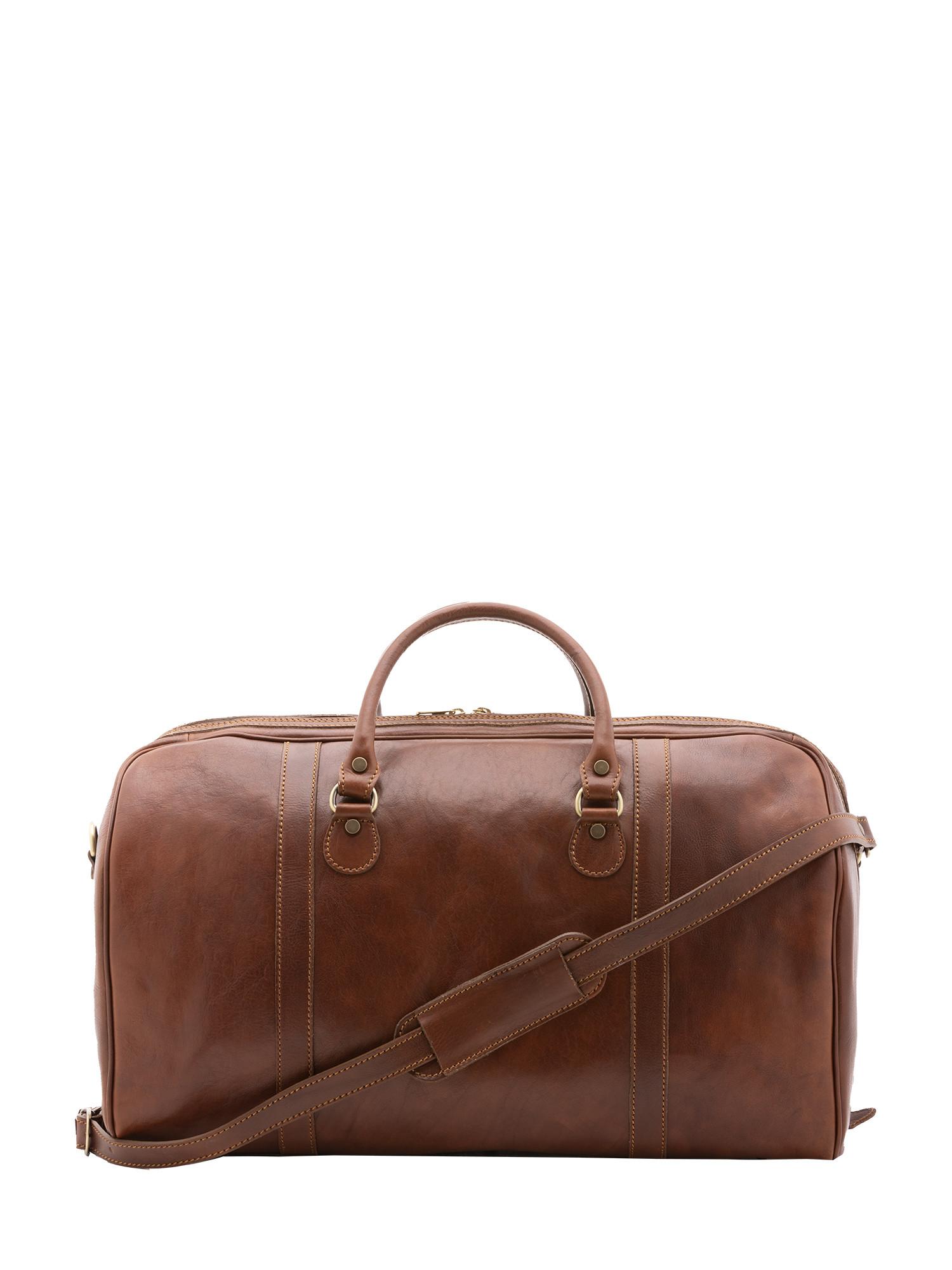Sac de voyage unisexe. La fermeture est avec zip. Les poches intérieures sont une avec fermeture éclair. Les poches extérieures sont absentes. La bandoulière est réglable et amovible en cuir. La poignée est en cuir. Il y a un compartiment interne. Le matériau extérieur est 100 % cuir véritable. À l'intérieur, il est doublé de coton. Dimensions : 54x39x18 cm. Fabriqué en Italie