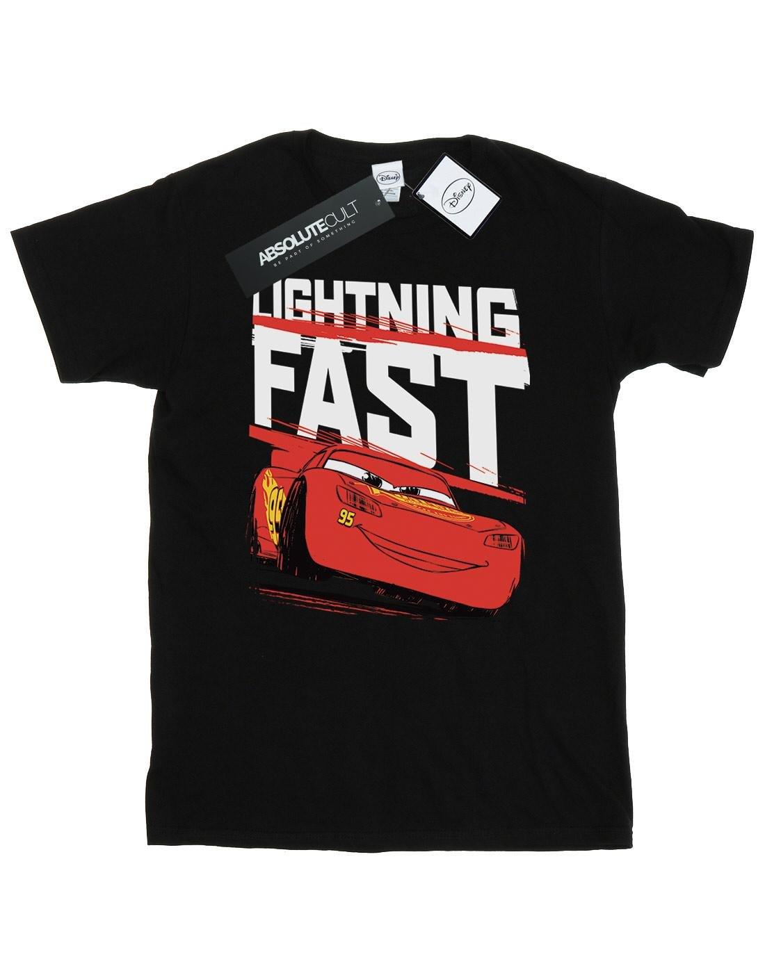 Ce T-shirt présente un imprimé graphique audacieux de Flash McQueen des Cars de Disney Pixar, avec les mots « LIGHTNING FAST » affichés en évidence. C'est un choix confortable et élégant pour les fans du film d'animation bien-aimé.
