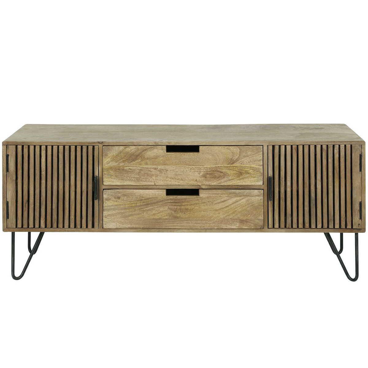 Le buffet TV 'tweak' est fabriqué en bois de manguier et laqué couleur sable. Le meuble TV possède 2 tiroirs et 2 portes. Les croisillons sur les portes confèrent au meuble un look traditionnel mais très moderne. Le meuble TV convient pour un téléviseur d'une largeur maximale de 55 pouces. Le meuble TV fait partie de la série 'tweak'.