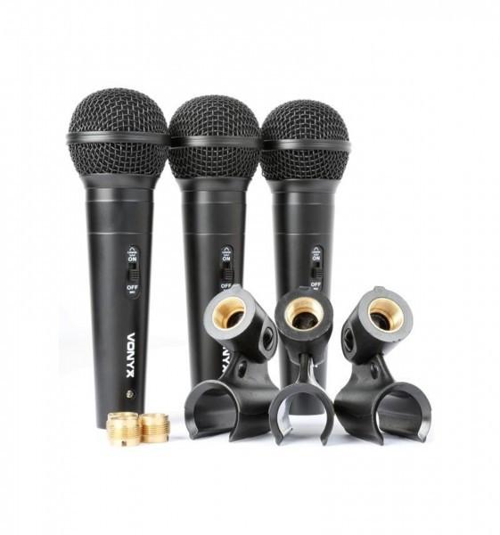 Vonyx VX1800S. Type: Microphone de karaoké, Sensibilité du microphone: 54 dB, Fréquence du microphone: 60 - 13000 Hz. Technologie de connectivité: Avec fil, Interface de l'appareil: mini XLR (3-pin), Distance de fonctionnement maximum: 5 m. Couleur du produit: Noir. Profondeur: 52 mm, Hauteur: 170 mm, Poids du Microphone: 1,6 kg. Nombre de produits inclus: 3 pièce(s)