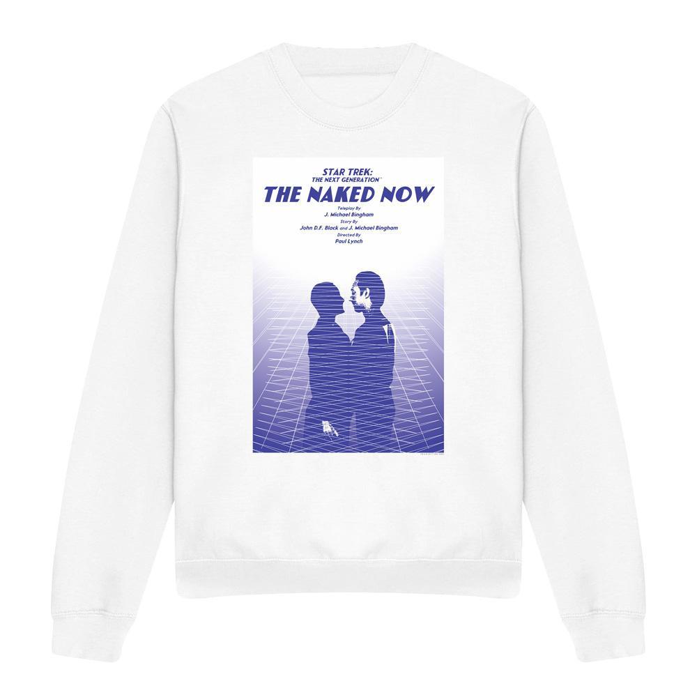 Ce sweatshirt présente un imprimé graphique inspiré de « The Naked Now », le troisième épisode de la première saison de Star Trek : The Next Generation. Le design capture l'essence du récit de l'épisode, en faisant une pièce distinctive pour les fans.