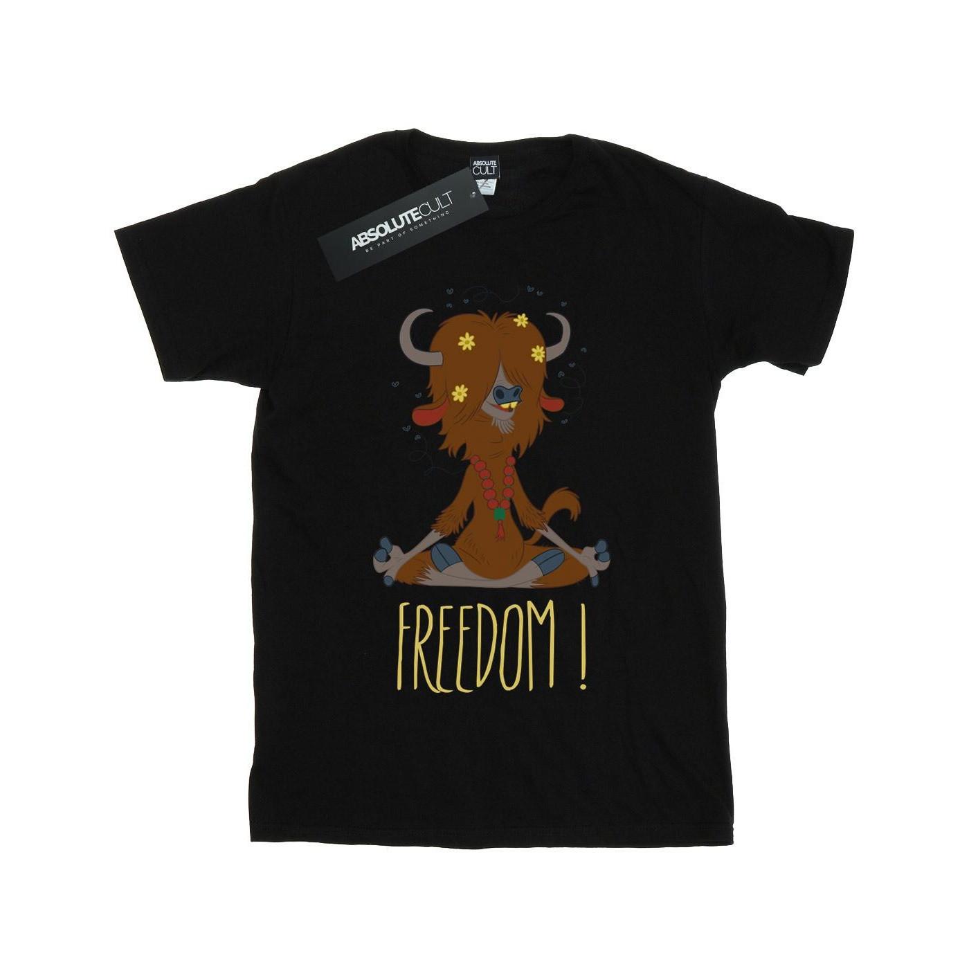 Ce T-shirt Zootropolis Yak Freedom présente un imprimé graphique vibrant de Yax le yak en pose méditative avec le mot « FREEDOM! » en dessous. Le col rond classique et les manches courtes offrent une silhouette intemporelle, le rendant adapté à diverses occasions décontractées.