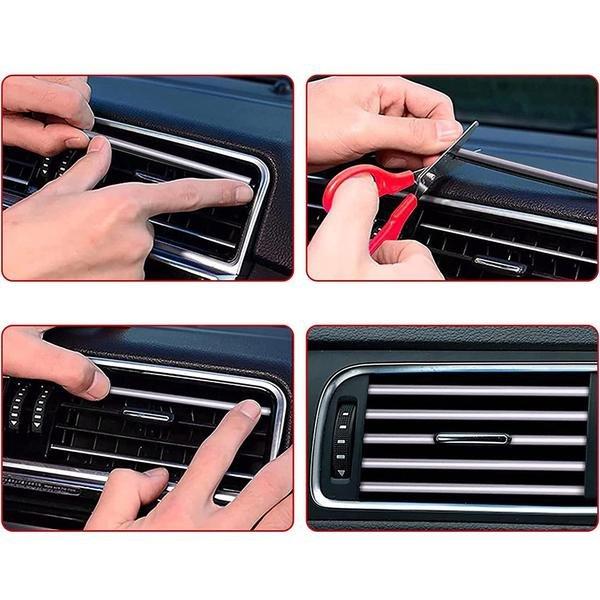 Ajoutez de la couleur à l'intérieur de votre voiture avec ces décorations de sortie de climatiseur en forme de U ! Il est facile de couper les bandes décoratives à la longueur souhaitée. Ils sont mis en place en les appuyant en place avec vos doigts.