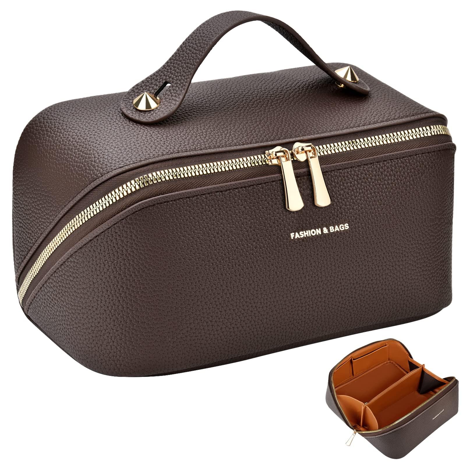 * Simplifiez votre vie avec la trousse à cosmétiques, cette trousse à cosmétiques de voyage est simple et légère, elle peut contenir tous vos produits de maquillage quotidiens. Poignée large et ferme pour un transport facile. Accès pratique à vos articles grâce à une ouverture spacieuse. * Cette trousse de maquillage est fabriquée en cuir PU de haute qualité à l'intérieur et à l'extérieur, beaucoup plus durable et plus épais que les produits similaires. Facile à nettoyer, une finition hydrofuge spéciale empêche les articles internes d'être mouillés. La double fermeture à glissière fonctionne en douceur, vous n'avez donc pas à vous soucier des rayures. * Dimensions (L*L*P) : 25*12*13cm/9.8*4.7*5.1inch, taille parfaite pour se glisser dans un coin de votre valise. Suffisamment d'espace pour ranger tous vos produits de beauté essentiels en un seul endroit, tels que les pinceaux de maquillage, le brillant à lèvres, le rouge à lèvres, l'ombre à paupières, la palette de maquillage, le parfum, la crème, le mascara, le vernis à ongles, les outils pour les ongles, le shampoing, le dentifrice, la brosse à dents. * Les produits cosmétiques et les outils de maquillage dont vous avez besoin peuvent être accueillis. * Il existe de nombreuses couleurs différentes, vous pouvez choisir la trousse de maquillage que vous voulez en fonction de vos préférences. Ce sac à cosmétiques de grande capacité serait un cadeau parfait pour une femme, une petite amie, une mère, une sœur, une fille, une famille, un amant ou une adolescente pour la Saint-Valentin, le bal de fin d'année, un anniversaire ou Noël.