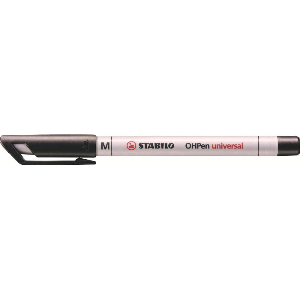 Universal OHP-Pen Non-Permanent Der STABILO OHPen non-permanent ist ein wasserlöslicher Folienschreiber, welcher auf fast allen glatten Oberflächen schreibt! rutschfeste Griffzone und praktischer Clip für unterwegs bis zu 72 Stunden Austrockenschutz ohne Kappe Kappe am Stiftende aufsteckbar