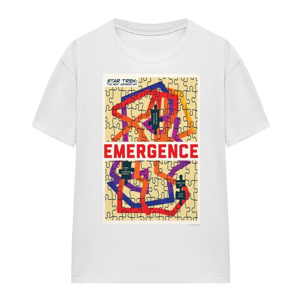 Ce T-shirt présente un imprimé graphique inspiré de l'épisode 23 de la saison 7 de "Star Trek: The Next Generation", intitulé "Emergence". Le design met en valeur un motif de puzzle avec des pièces interconnectées de différentes couleurs, reflétant le thème de l'épisode. Le T-shirt est un moyen confortable et élégant de montrer son appréciation pour la série de science-fiction emblématique.