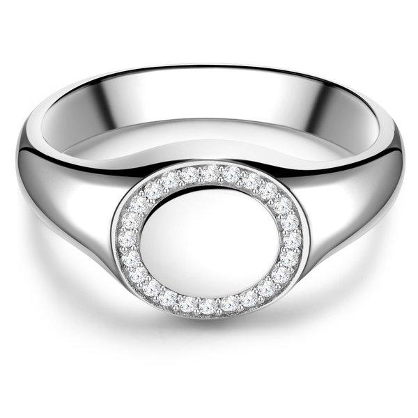Un favori de la bijouterie réinterprété: la bague élégante des dames de la marque Munich combine la forme de bague classique d'étanchéité avec beaucoup de glamour. Contrairement à la surface de la bague polie très brillante, la plaque à anneau aplatie dans le pavé est encadrée par des cristaux de zircone à facettes - un casseur oculaire scintillant sur votre main, ce qui permet à chaque tenue et convient à une variété de looks. La bague à la mode est en argent sterling de haute qualité 925 et raffinée d'une couche de rhodium protectrice avant de commencer. Alors les fashionistas inspirent également des bijoux classiques!