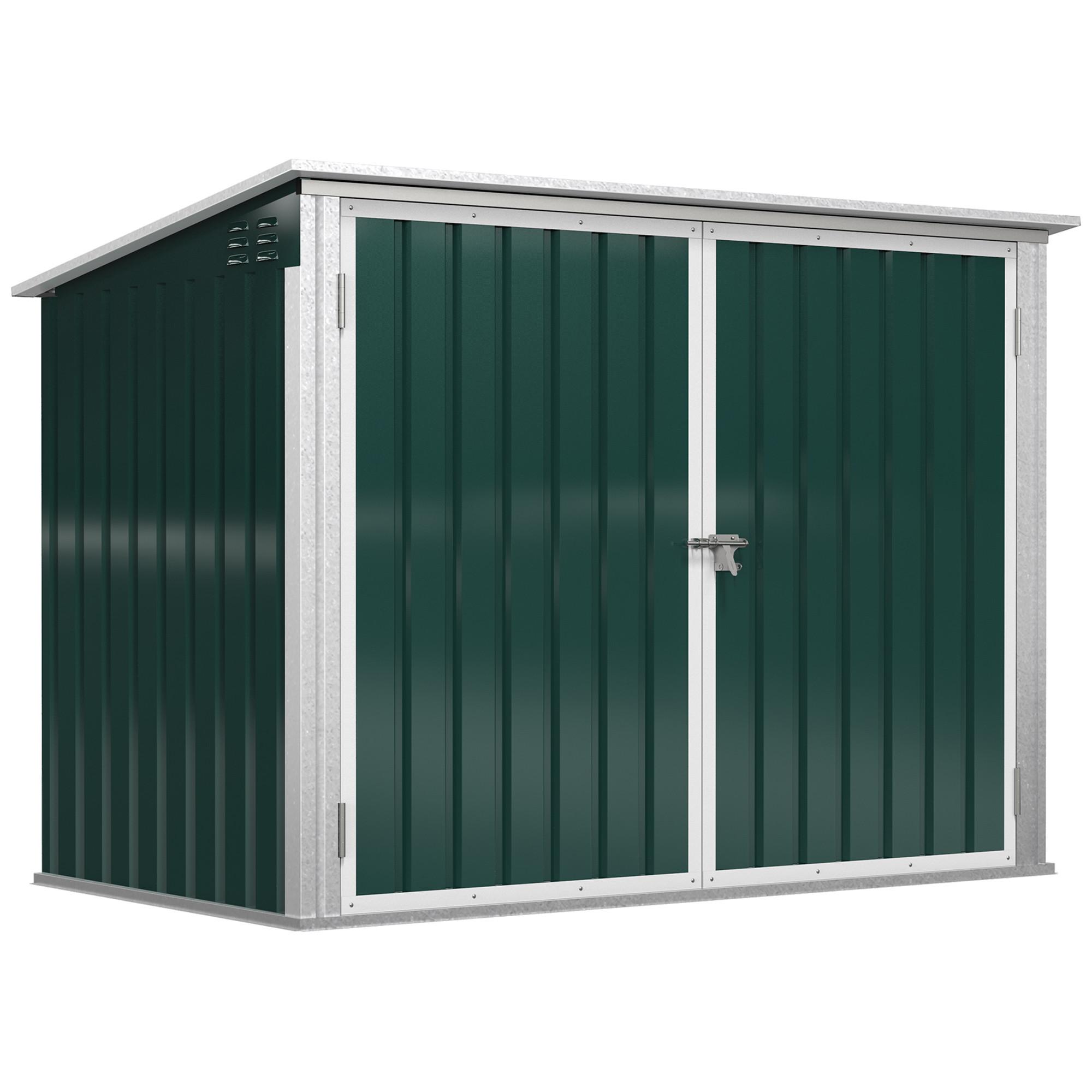 Avec cet abri de stockage en métal pratique d'Outsunny, vous pouvez efficacement empêcher vos déchets d'être emportés par le vent ou d'être fouillés par des animaux curieux. La double porte verrouillable et l'ouverture pneumatique du toit permettent une manipulation pratique, afin que vous puissiez charger et décharger vos bacs sans effort. De plus, les ouvertures d'aération latérales assurent la circulation de l'air et évitent les odeurs désagréables.