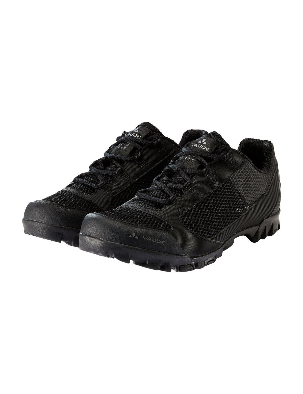Trop chaud ? Cette chaussure de vélo parfaitement aérée sait affronter les jours de canicule. La chaussure de cyclisme particulièrement respirante et d'allure sympathique est la coéquipière idéale lorsque les températures grimpent en flèche. Le matériau en mesh aérien est confectionné à 100 % en polyester recyclé, résistant et robuste, offre une bonne stabilité et ne se tord pas en appuyant sur la pédale. Le matériau est renforcé au niveau de la cheville pour un confort accru ; les renforts préformés au niveau du talon et des orteils protègent plus contre l'abrasion. Les lacets se fixent en toute sécurité sous les Lace Bungees (languettes en caoutchouc élastiques) pour ne pas se coincer dans la chaîne. La semelle SUPtraction® R20 en caoutchouc recyclé à 20 % dispose d'un cache en caoutchouc amovible grâce auquel la chaussure peut être transformée en une pédale automatique en deux temps trois mouvements. Sa rigidité moyenne (V-Flow 5) offre un confort de marche élevé tout en assurant la transmission de la force efficace sur la pédale. Le label Green Shape de VAUDE garantit un produit écologique, fonctionnel et fabriqué dans des matériaux durables.