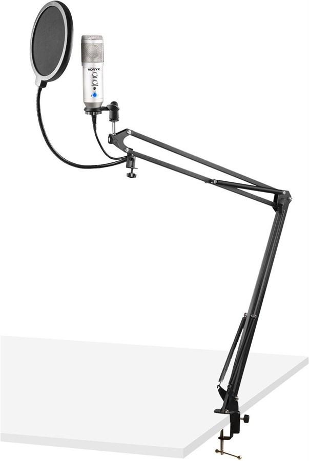 Vonyx, CMS320T USB-Mikrofon, Tischarm, Popfilter, silber