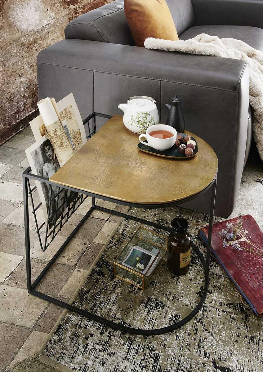 Table d'appoint Mali - plateau aluminium antique doré - piétement métal noir mat (largeur x hauteur x profondeur) env. 55x45x47cm