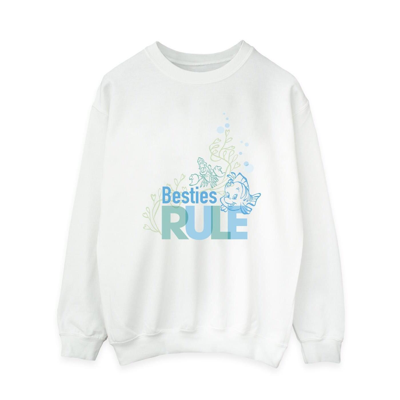 Ce sweatshirt présente un charmant graphique du film "La Petite Sirène" de Disney, mettant en scène les meilleurs amis d'Ariel, Polochon et Sébastien, avec la phrase "Besties Rule". Le design est parfait pour les fans du film d'animation classique.
