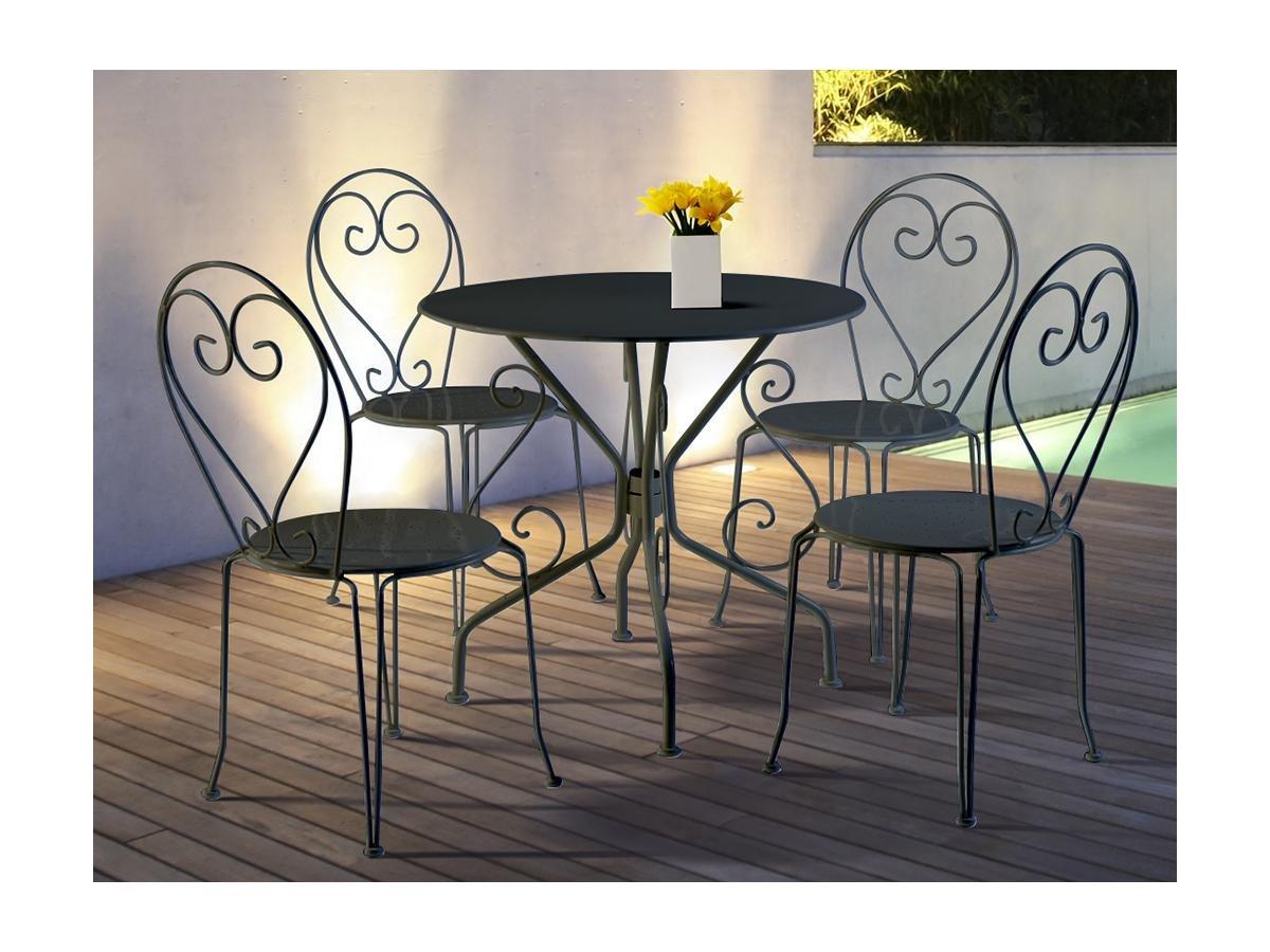 Vente-unique, Salle à manger de jardin en métal façon fer forgé une table 4 chaises empilables s GUERMANTES